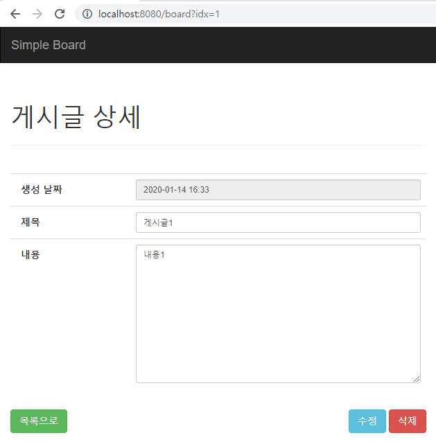 게시글 목록, 작성, 수정, 삭제만 가능한 간단한 게시판을 만들어보자.