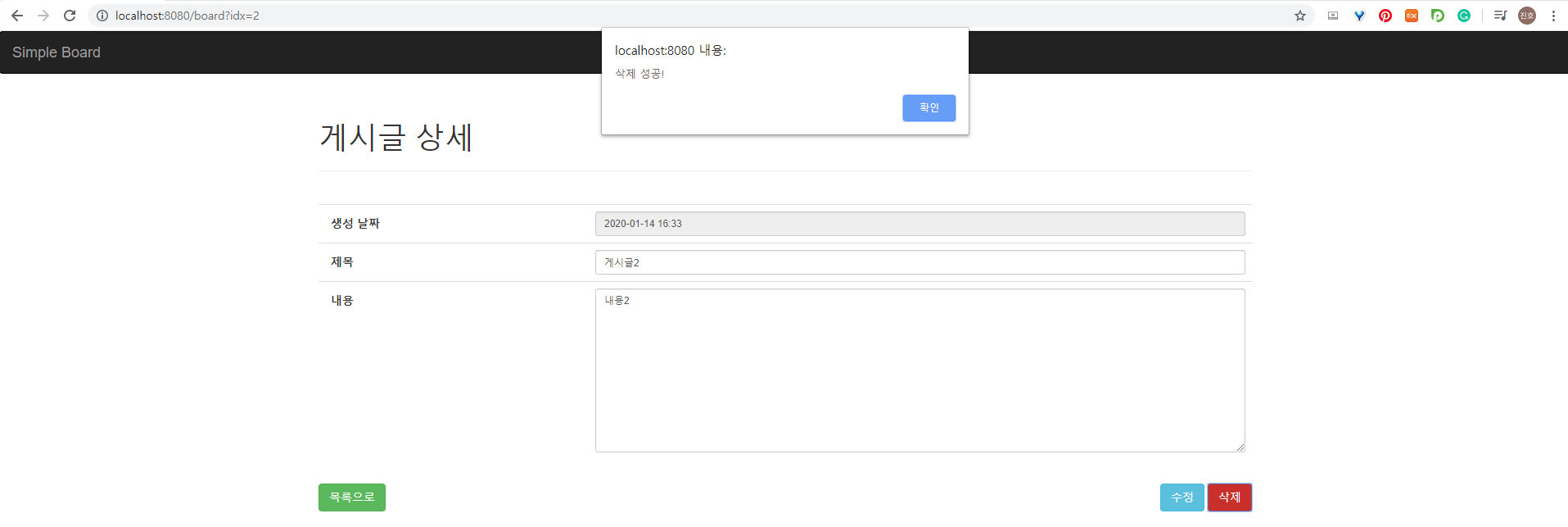 수정 </button> <button th:if="${board?.idx}" type="button" class="btn btn-danger" id="delete">