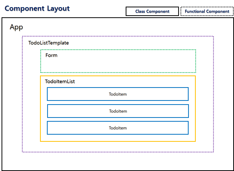 다음으로 위에서 그림으로 표현한 To-do List 의 Component Layout 을 토대로 컴포넌트를 구성하도록 한다.