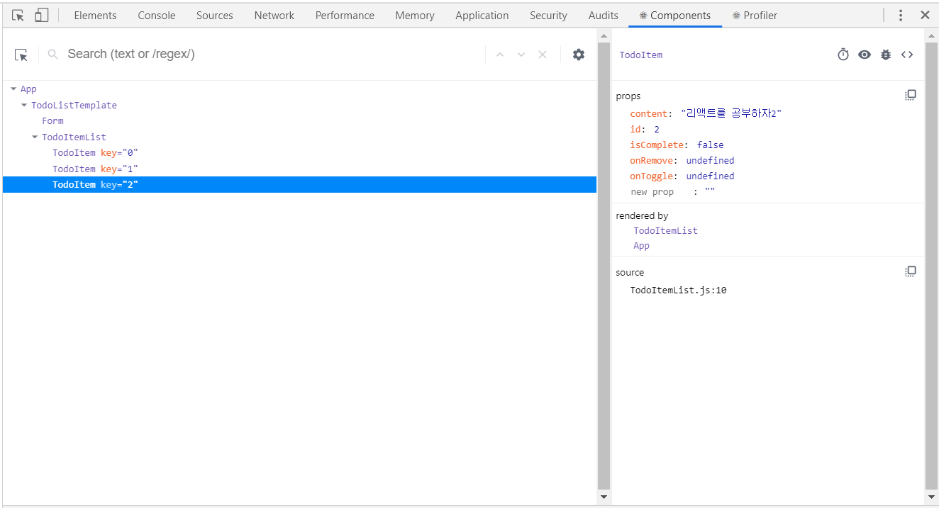 ({form, todoItemList}) => { ... } 형태로 작성을 한 것이다. 이 컴포넌트는 두 가지의 props 를 받게 되는데 children 의 경우엔 나중에 우리가 이 컴포넌트를 사용하게 될 때 아래와 같은 방법으로 사용하게 된다.