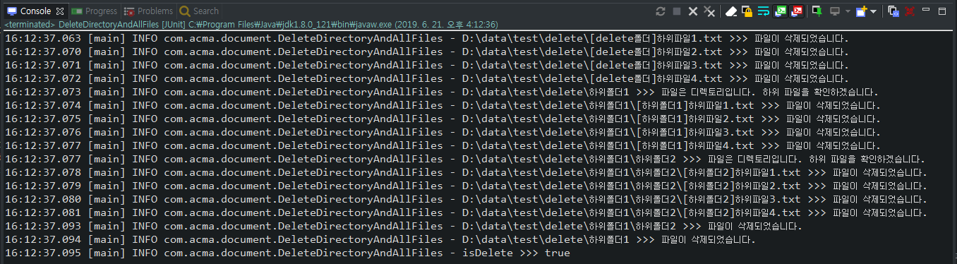 "디렉토리 및 디렉토리 하위 파일"을 모두 삭제할 수 있도록 코드를 수정 후 실행해보겠습니다.